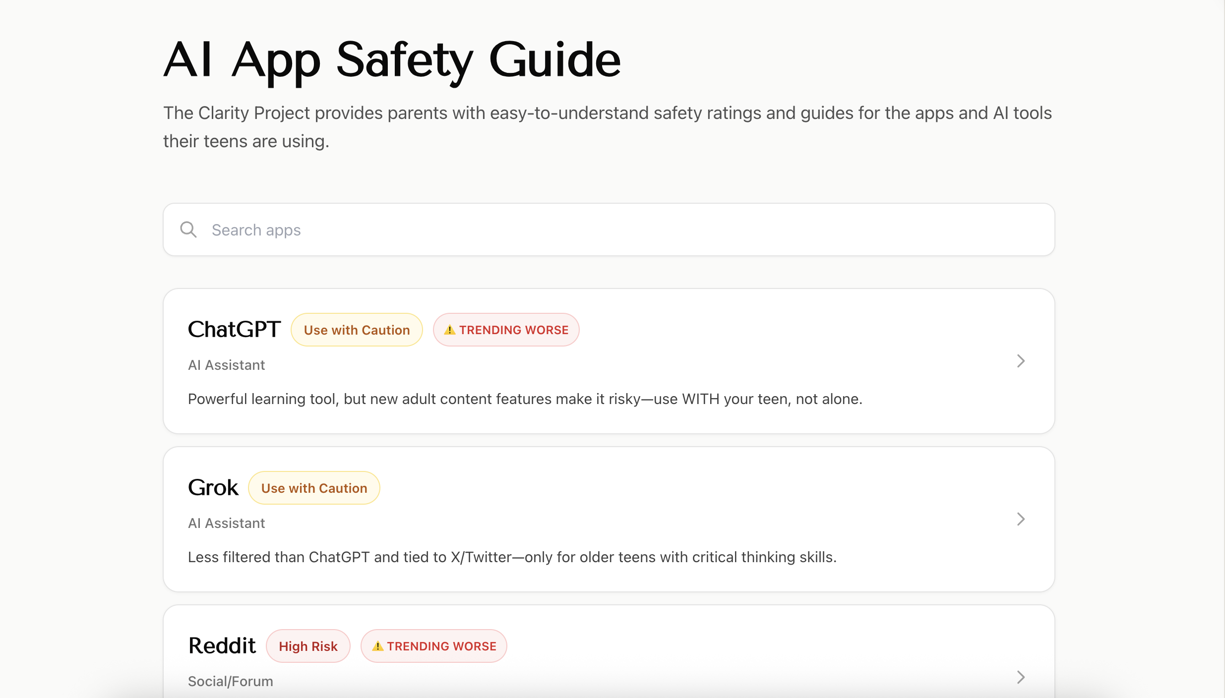 Get clear, actionable safety information on programs your kids are using. Color-coded ratings, honest risk explanations, and step-by-step parental control instructions—updated monthly so you can make informed decisions for your family.